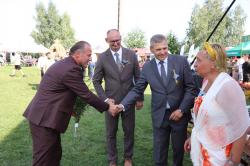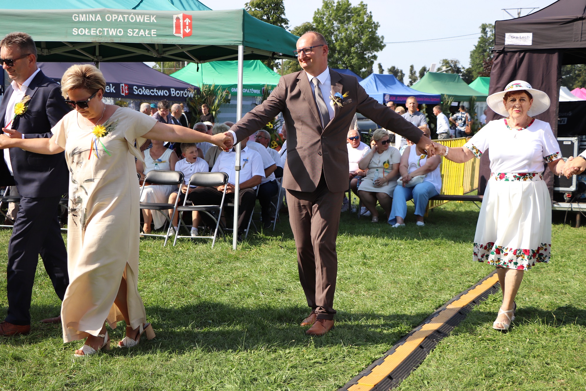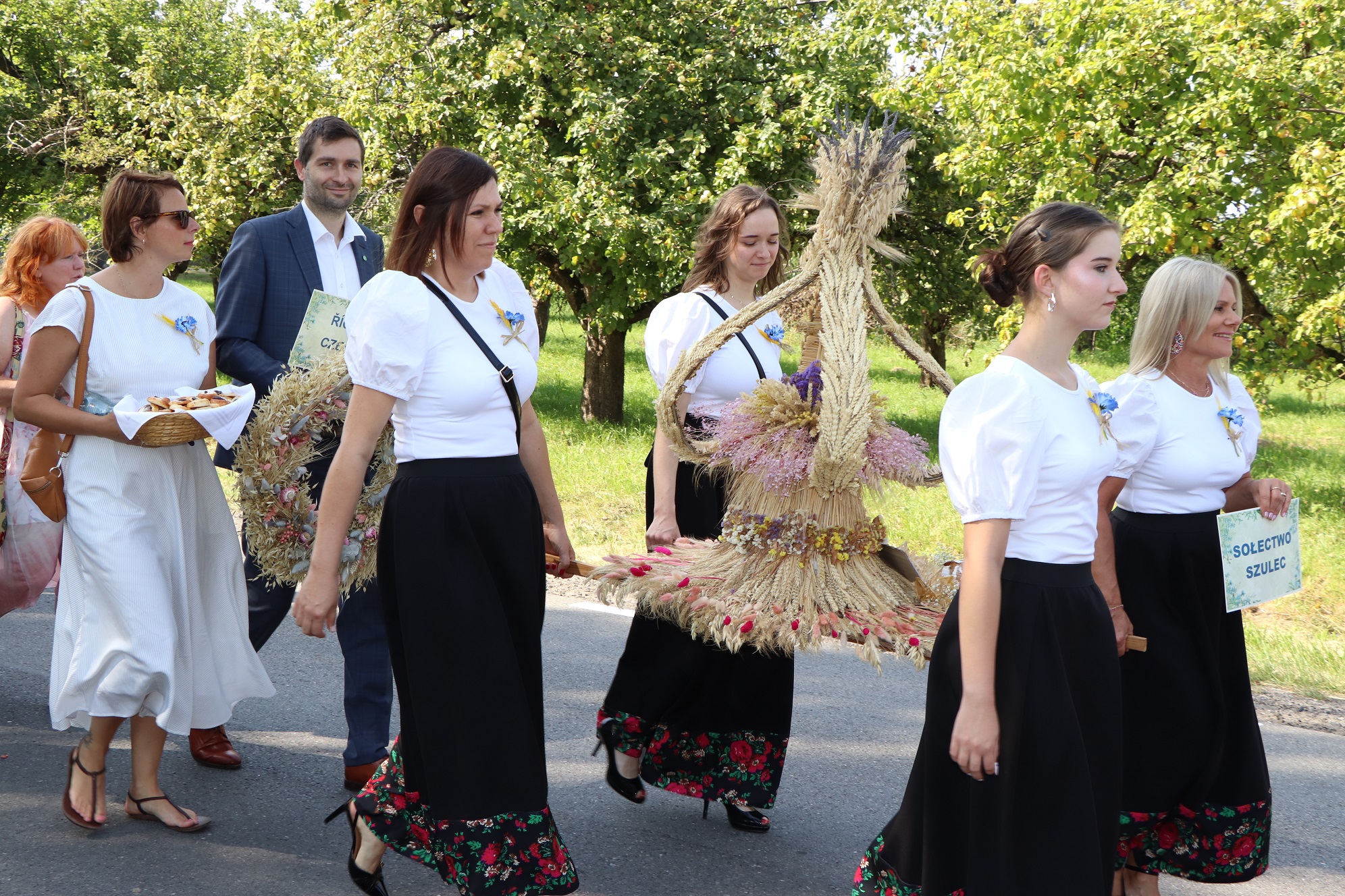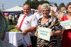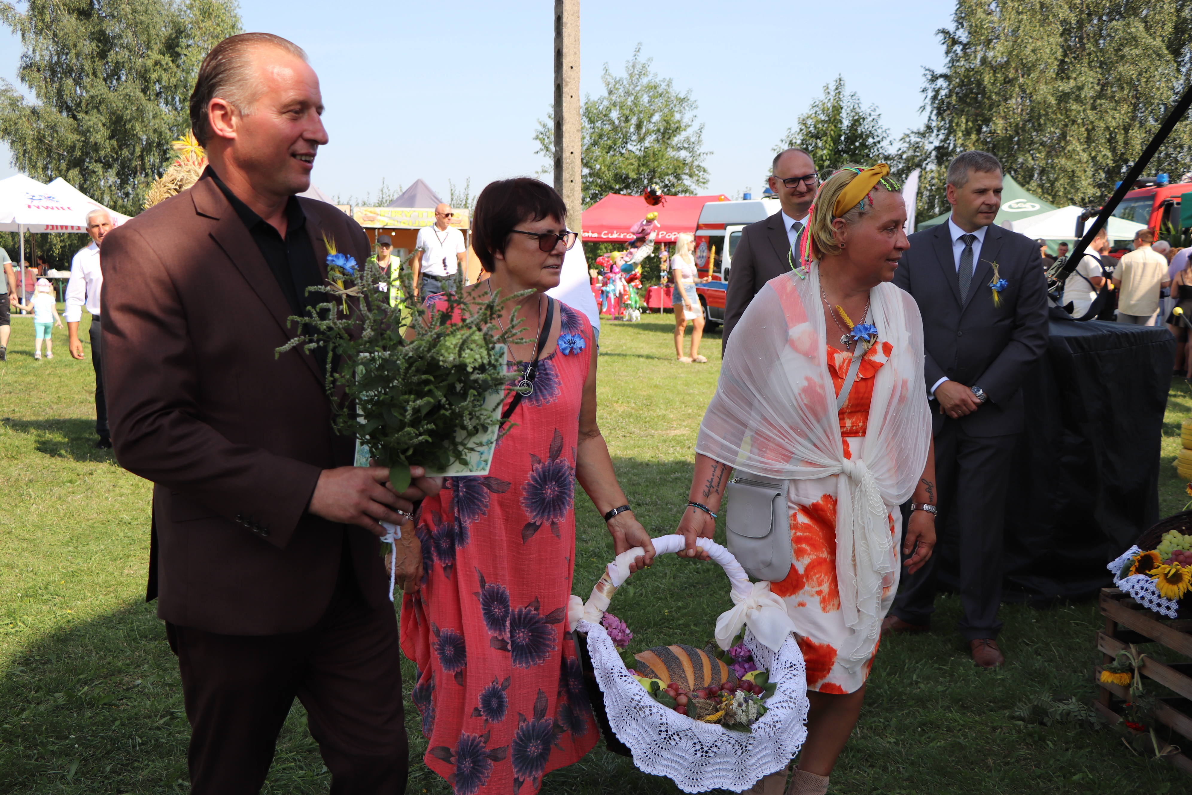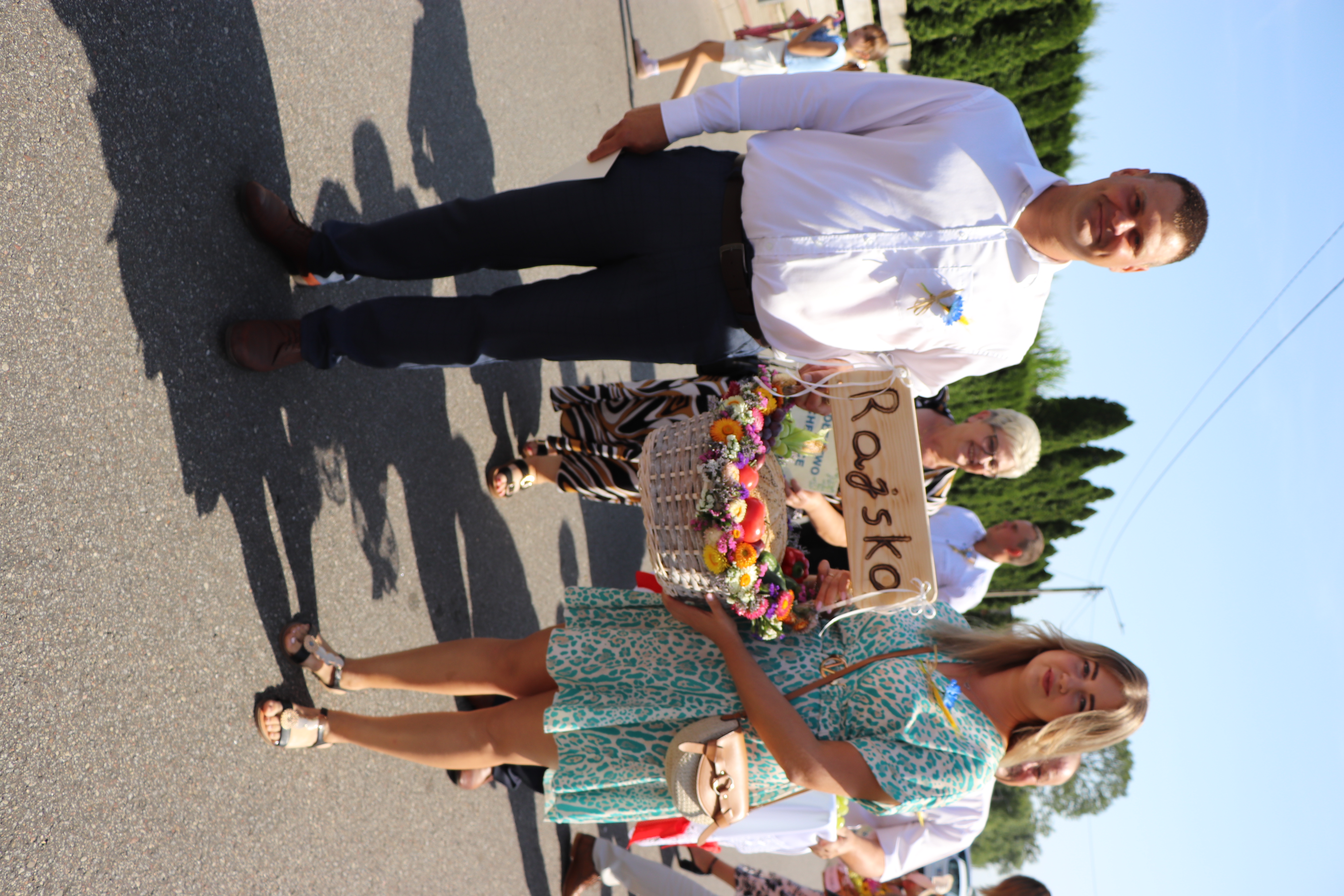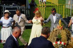W tym roku zaszczytną funkcję starościny Dożynek pełniła pani Edyta Król, która wraz z mężem Piotrem prowadzą gospodarstwo ogrodnicze w Rajsku. Starostą Dożynek był pan Waldemar Małolepszy, który wspólnie z żoną Agnieszką prowadzą gospodarstwo rolne w Sierzchowie. Starostowie Dożynek złożyli na ręce burmistrza gminy Sebastiana Wardęckiego bochen chleba, który tradycyjnie został rozczęstowany wśród wszystkich gości. Zgodnie z tradycją przepiękne wieńce zostały ośpiewane, obtańczone i nie zabrakło również humorystycznych przyśpiewek. Wśród gości, którzy wzięli udział w obrzędzie byli m.in. poseł na Sejm RP Barbara Oliwiecka, prezes Wielkopolskiej Izby Rolniczej Mieczysław Łuczak, oraz Wiceprzewodniczący Rady Powiatu Kaliskiego Wincenty Nowak. Gośćmi specjalnymi były delegacje z partnerskich gmin: Ricany z Czech i Marianówka z Ukrainy.